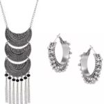 Enamorekart Silver Oxidised Necklace With Earring set for Women and Girls