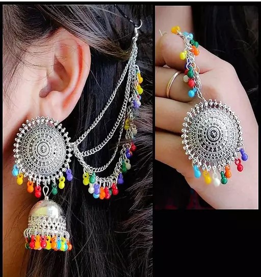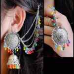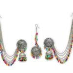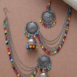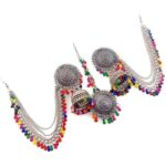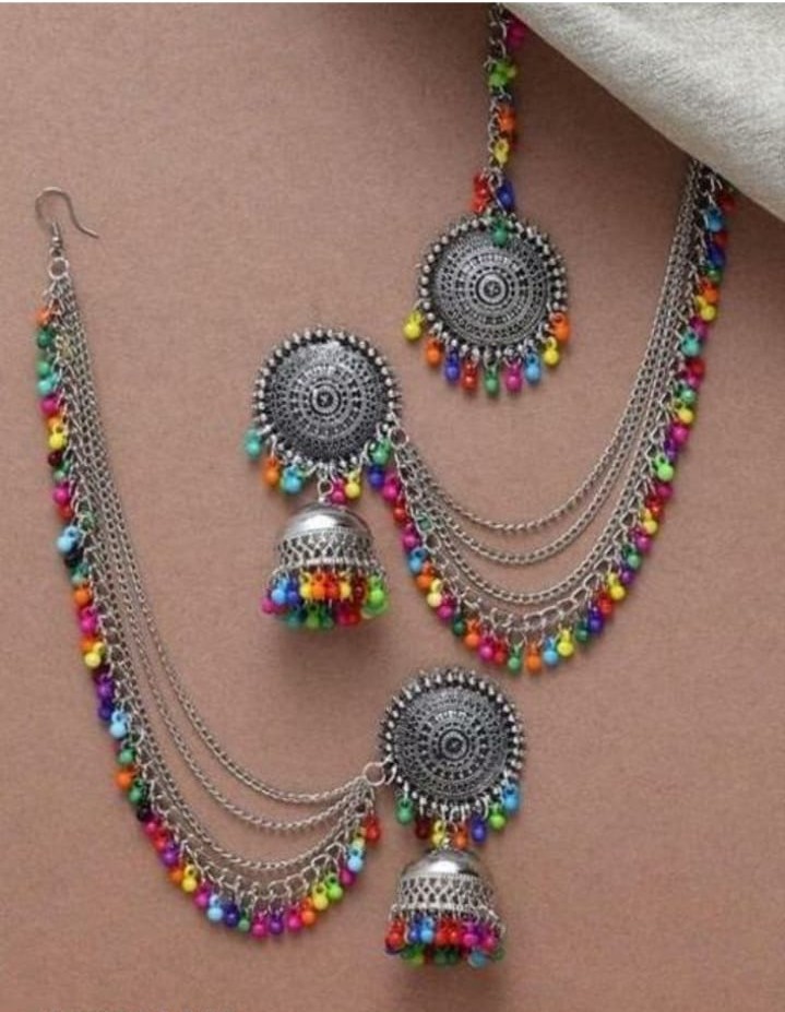 Enamorekart Silver Oxidised Multicolor Earring set with Maangtika for Women & Girls